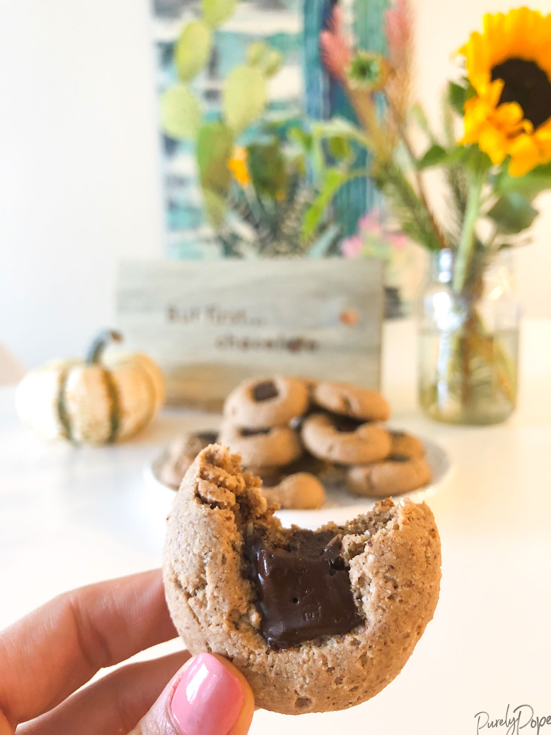 These cookies are super easy to make, just like everything I make. Honestly cannot do anything too complicated, ever! If you’re looking to create a whole dessert display, definitely check out this Vegan Dark Chocolate Bark to go along with the cookies. Before we jump in, here is a list of the specific products I prefer to use for the recipe: ChocZero Maple Syrup or Pure Maple Syrup, Kirkland Creamy Almond Butter (or any with only almonds & salt, no OILS), Bob’s Red Mill Almond Flour & Lily’s Dark Chocolate Bar. More products I love for this recipe can be found here.