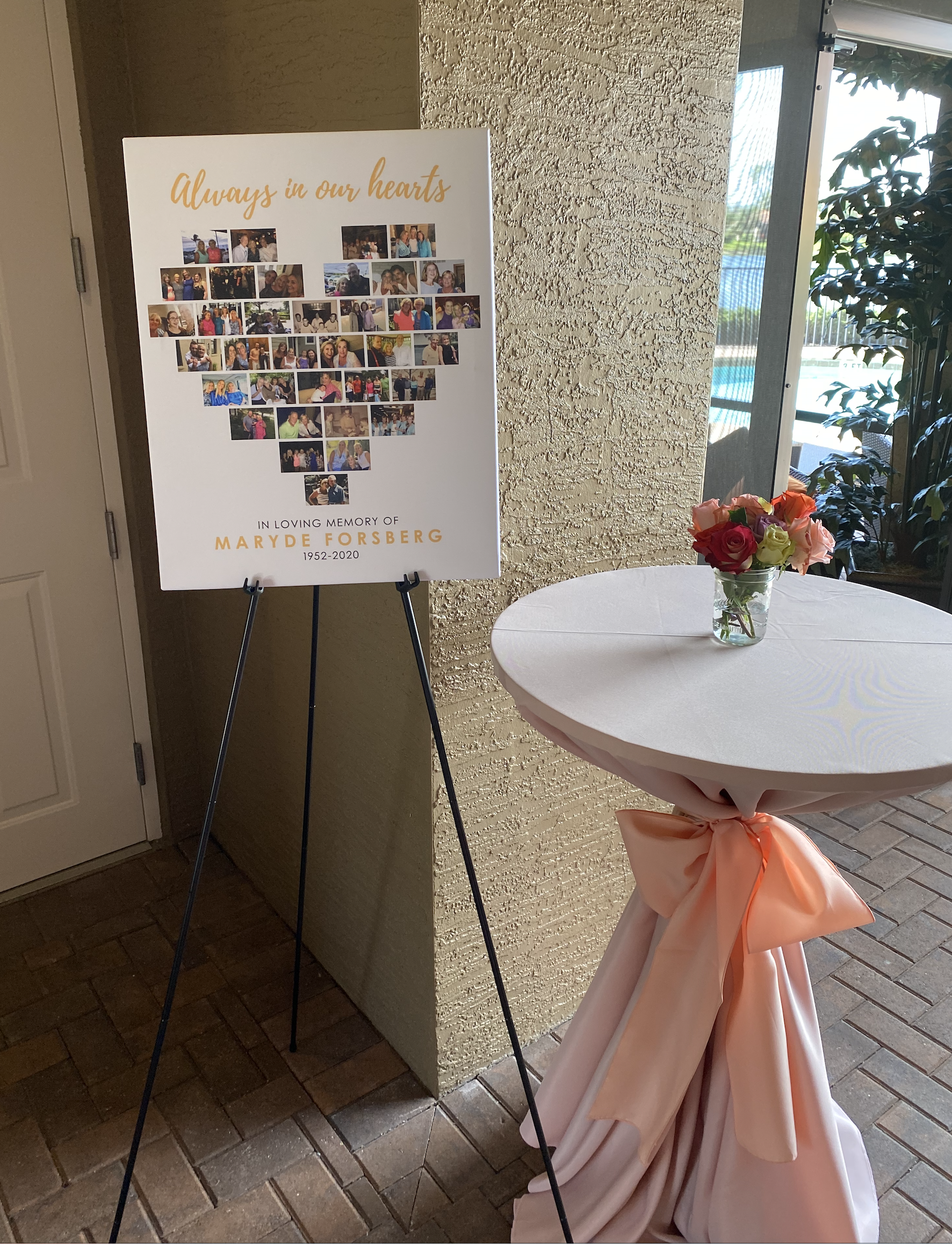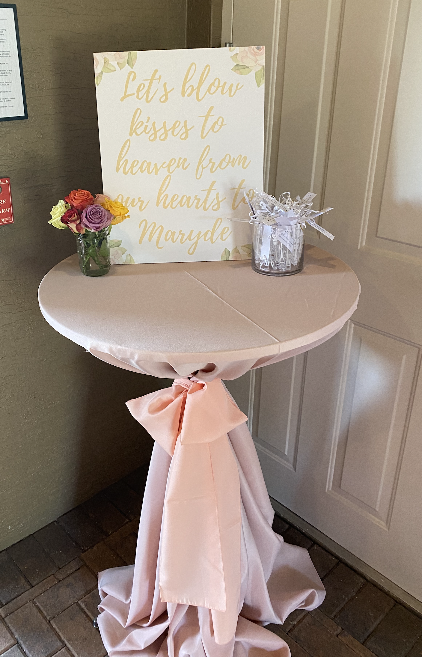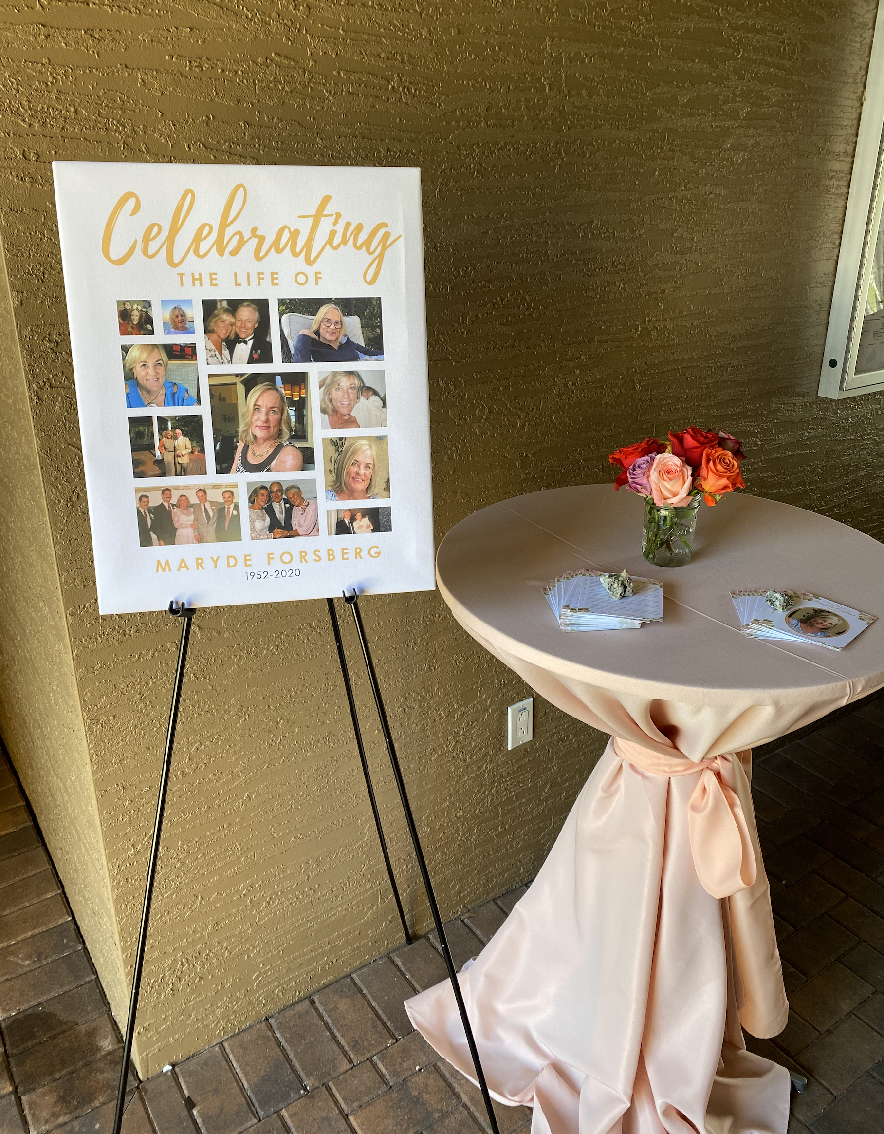 - Our entrance to the Celebration of lLife. We printed memorial cards and canvases for Mary De.