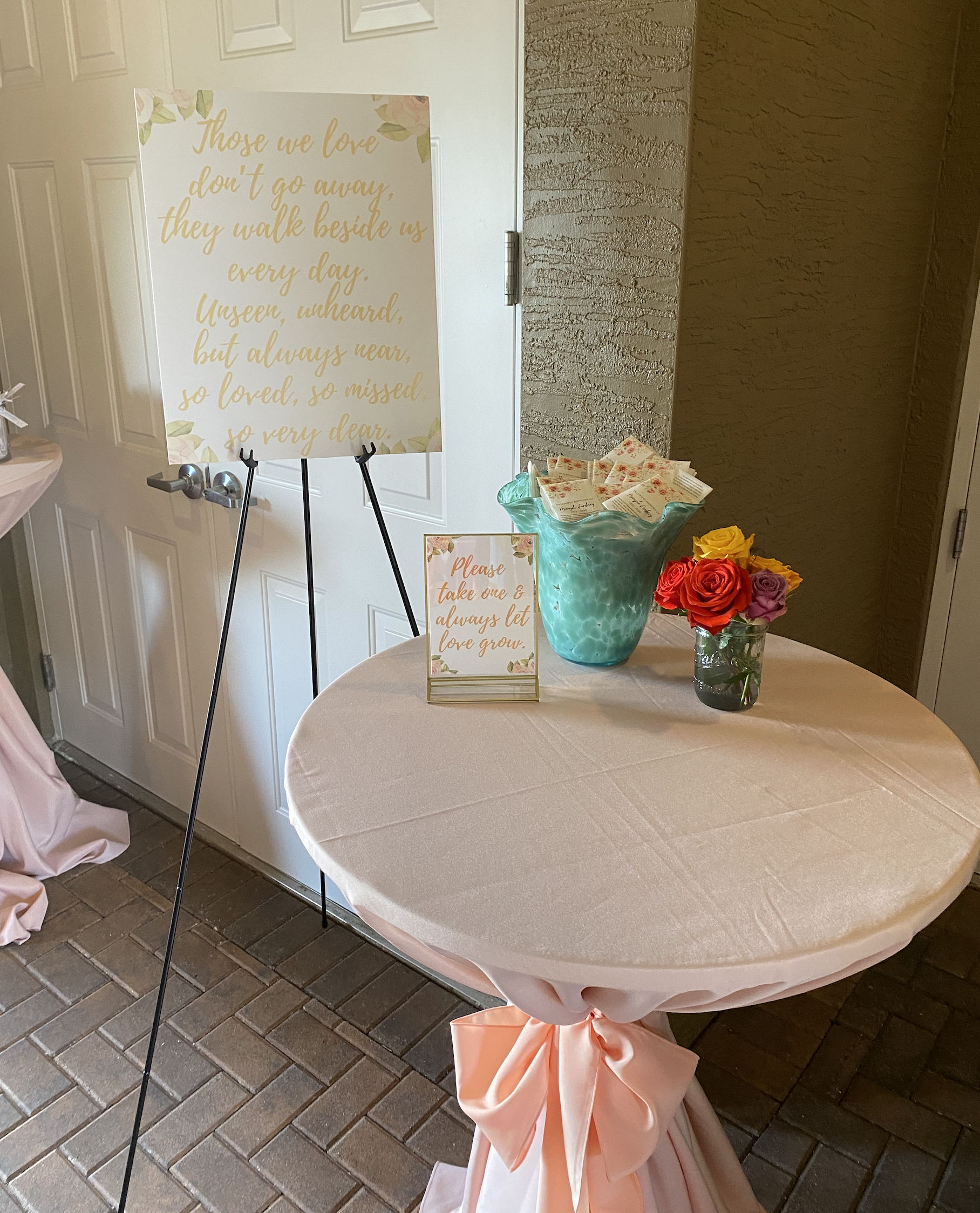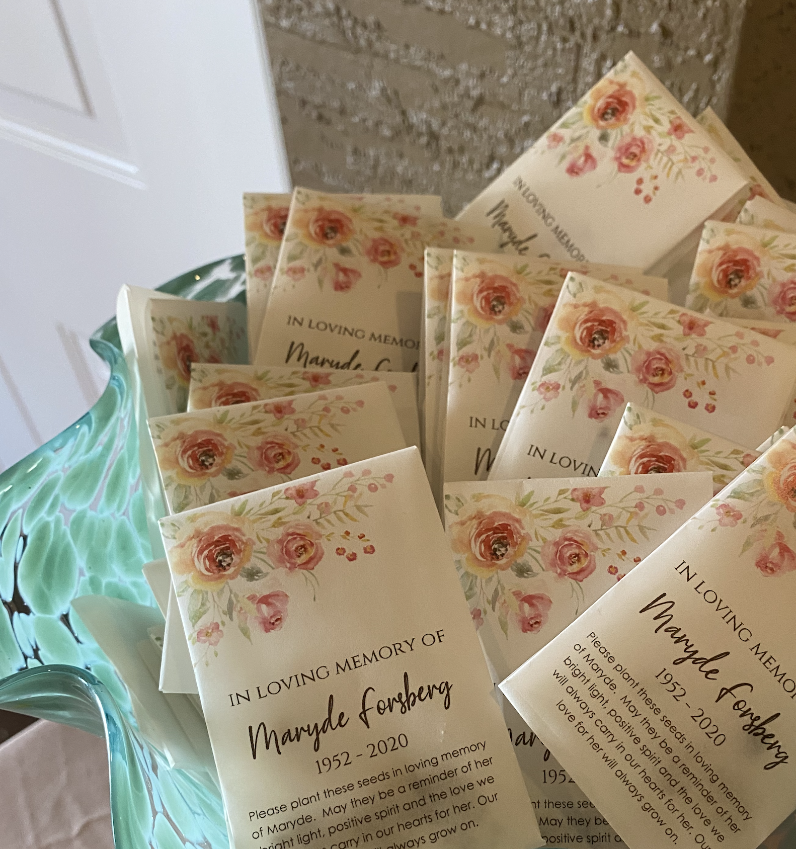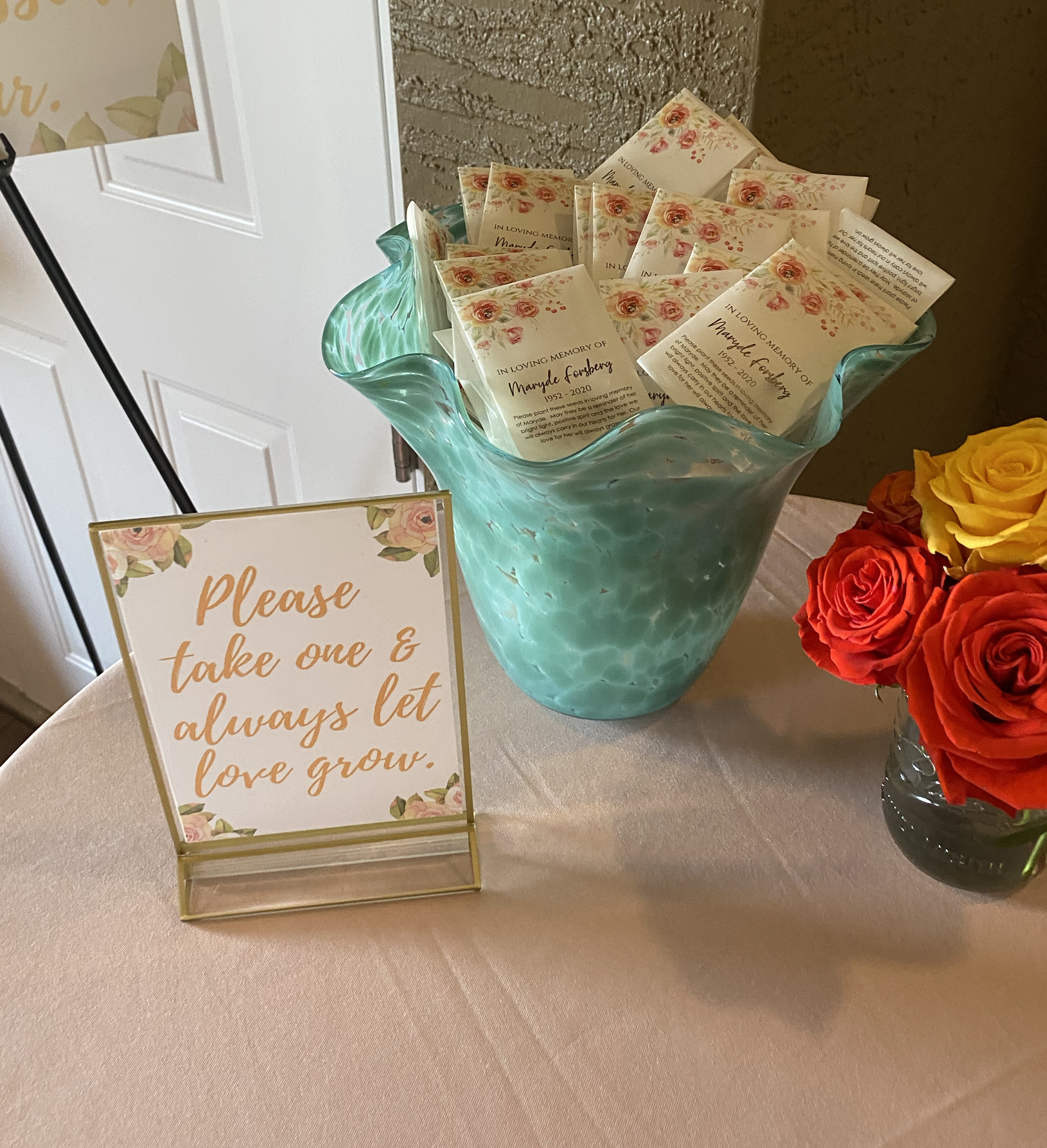 - Favors of flower seeds for guests to take and allow our love for Mary De to continue to ‘grow on.’