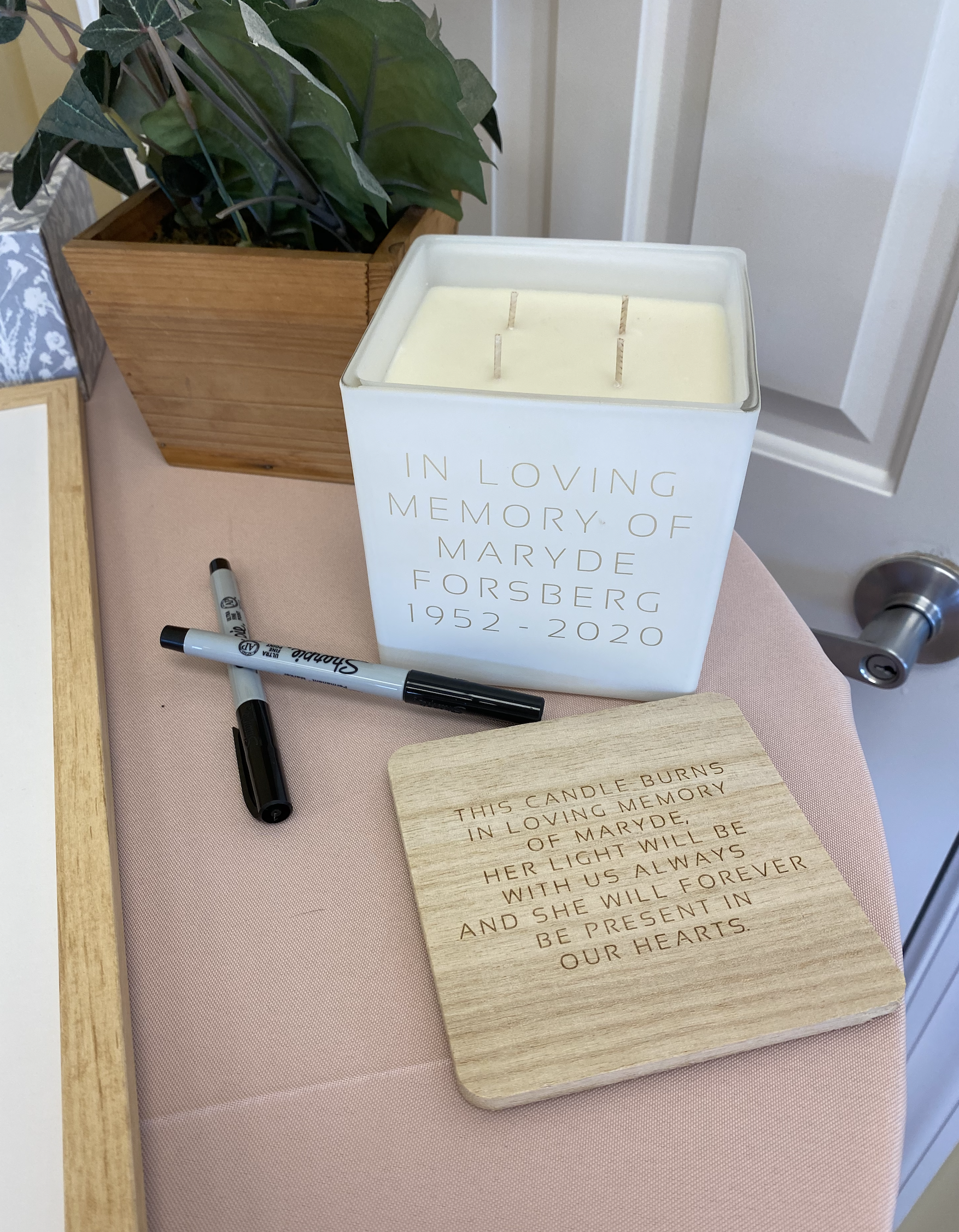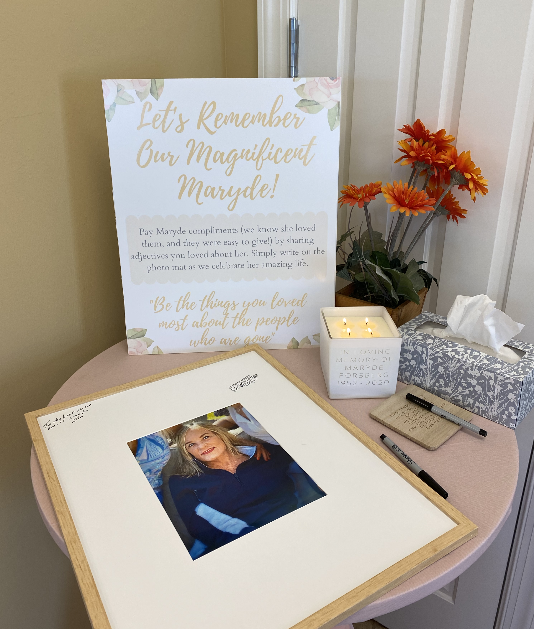 - Finally, we framed our favorite photo of Mary De and had everyone write their favorite adjective of her (she loved compliments!) My parents kept this in their house.