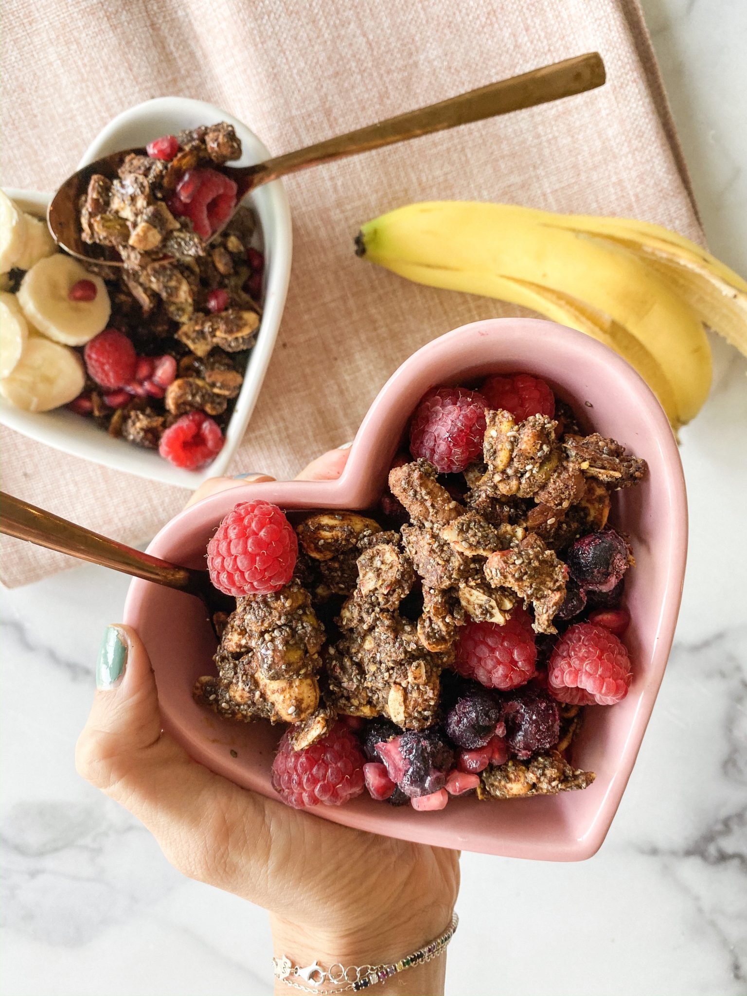Let’s be honest, who doesn’t LOVE a good granola? Extra crunchy, salty and sweet all at the same time = pure heaven! This grain free pumpkin granola checks ALL of the boxes, and it’s actually super duper, extra freaking easy to make as well! It’s perfect for the fall season, and I’m also going to add in a humble brag here: it’s NICK APPROVED!
