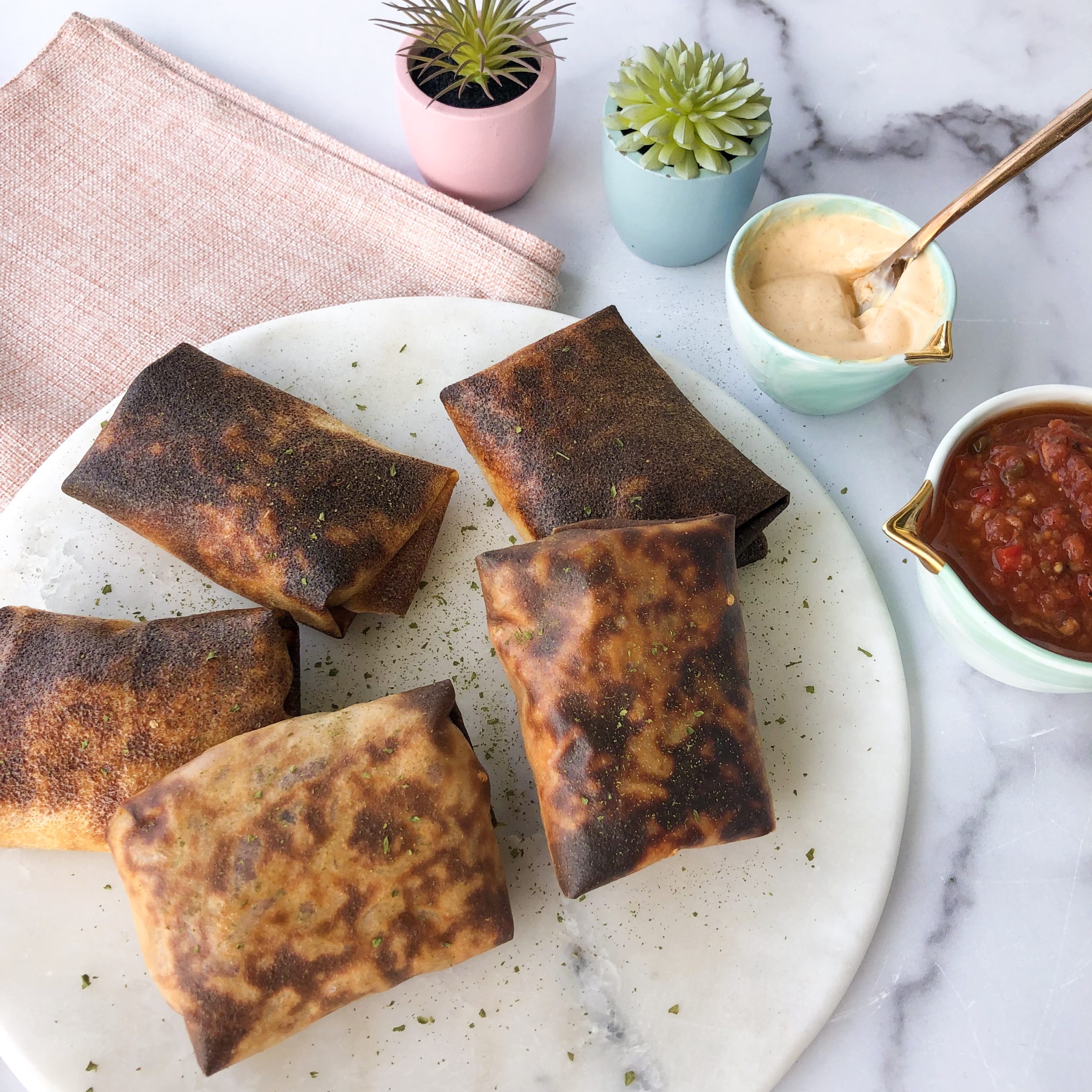 Can you believe it? A HEALTHY chimichanga? Well, ya better. This chimichanga recipe is not only low carb, but they’re also down right delicious. Honestly these are just a new staple in our house and the sauce I made with it – don’t even get me started! Let’s fiesta right on into this recipe!!