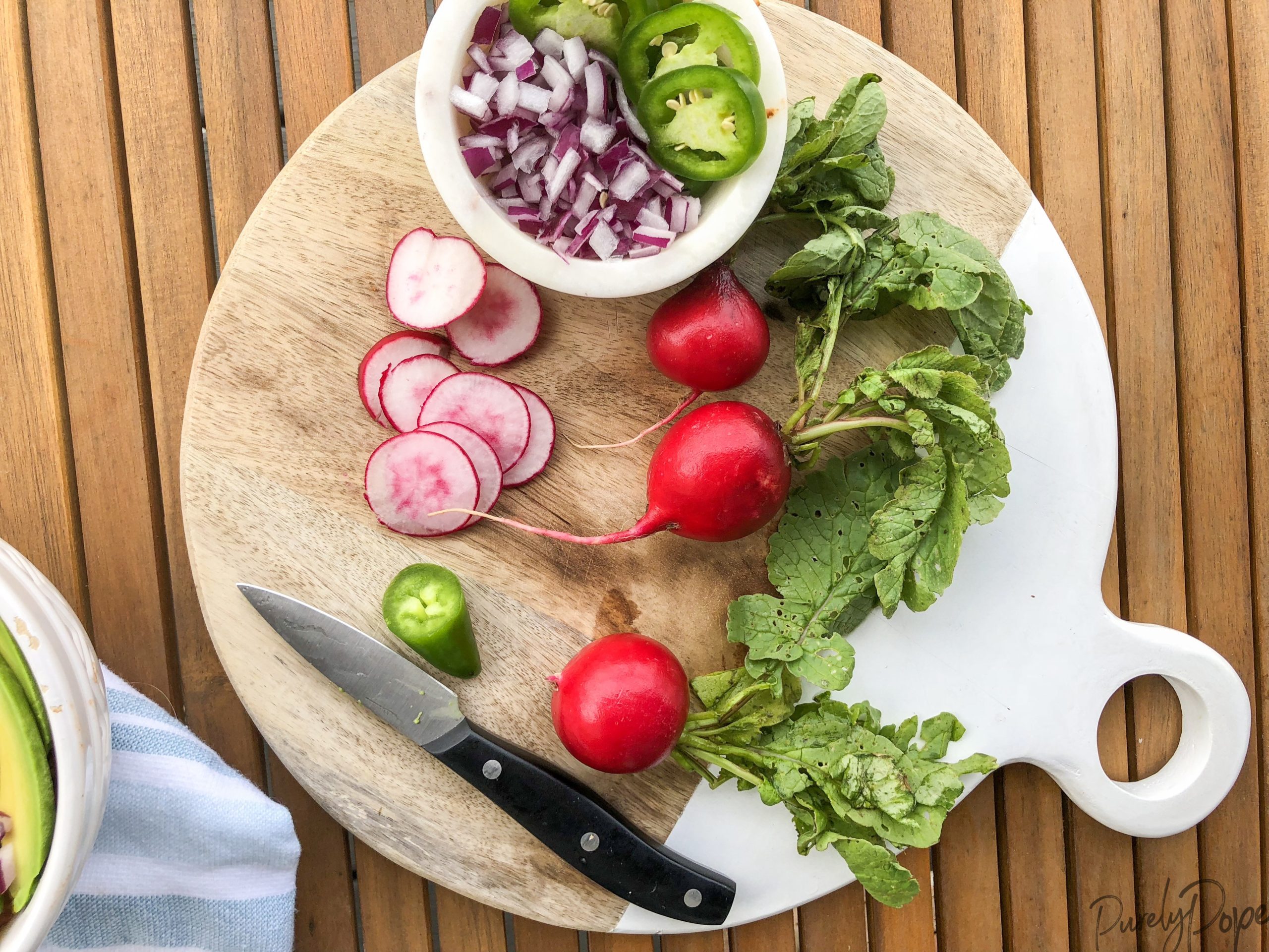 - Once all of the flavors have settled, enjoy with toppings of radish, avocado, red onion and jalepeno!