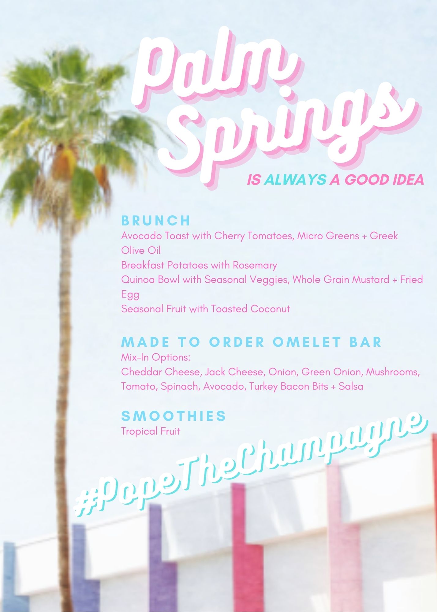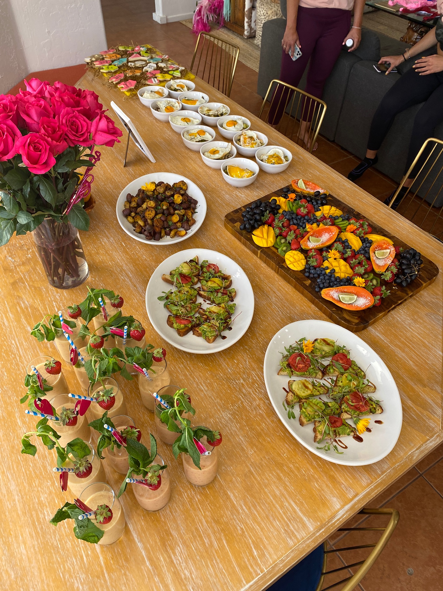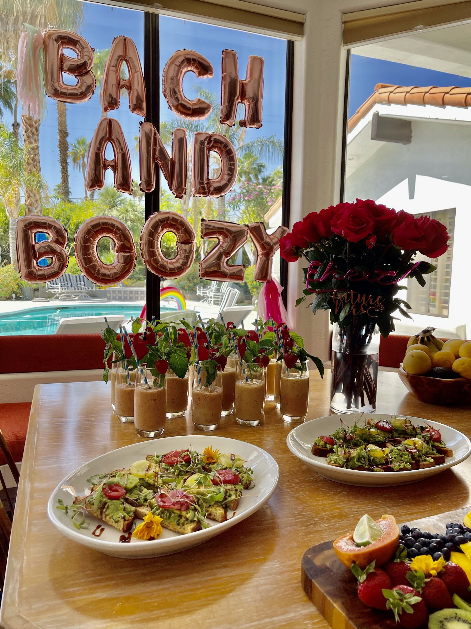 • 9:00am: CHEF LISA (who we hired for the day) prepared an insane brunch spread (menu’s below for the day) and we refueled from the night before. Highly recommend her for any Southern Cali or Palm Springs Bachelorette Party!