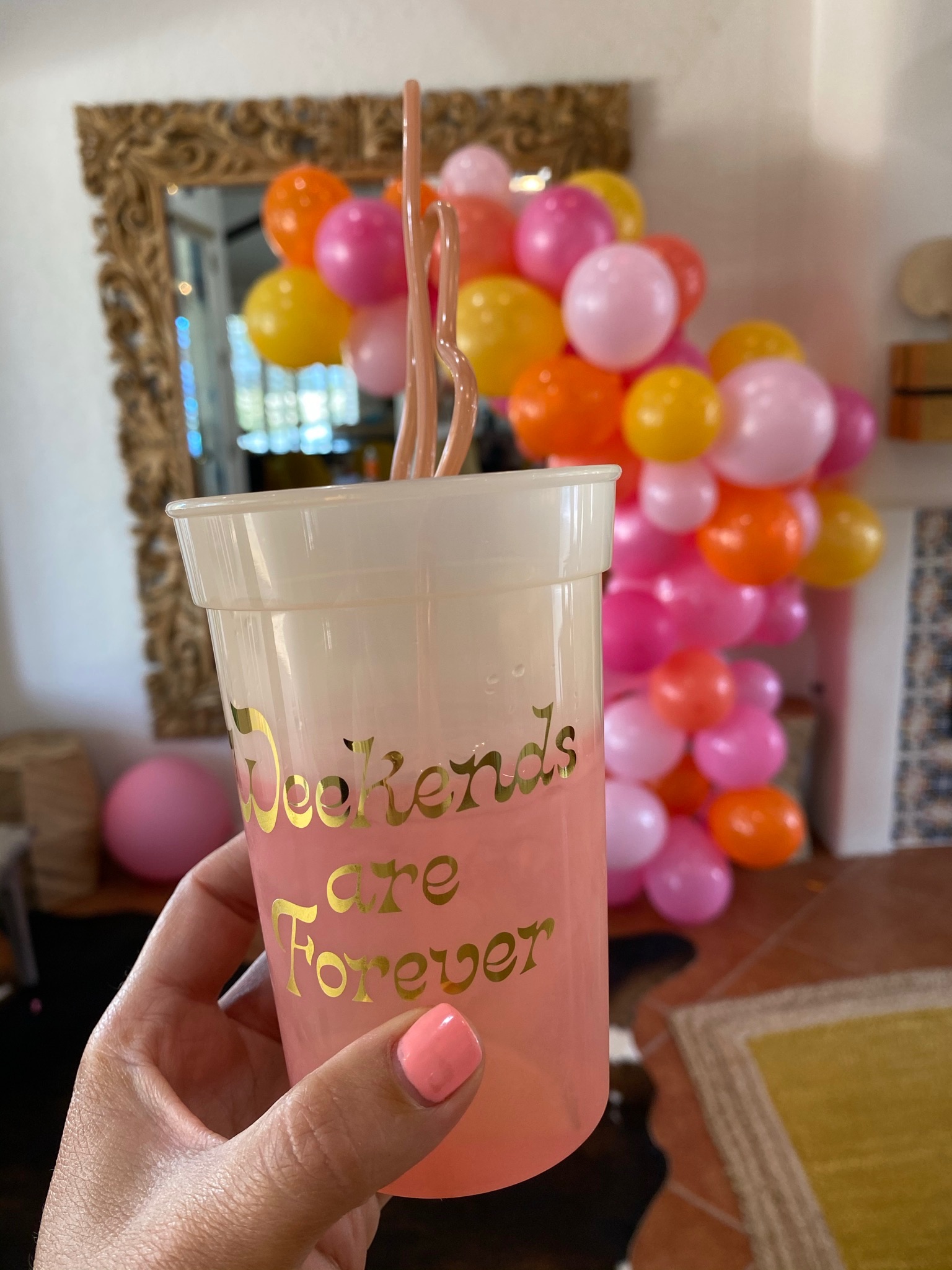 • Balloon Arch: They did a DIY Balloon Arch from this kit on Etsy – it was around the mirror and in the pool and so cute!