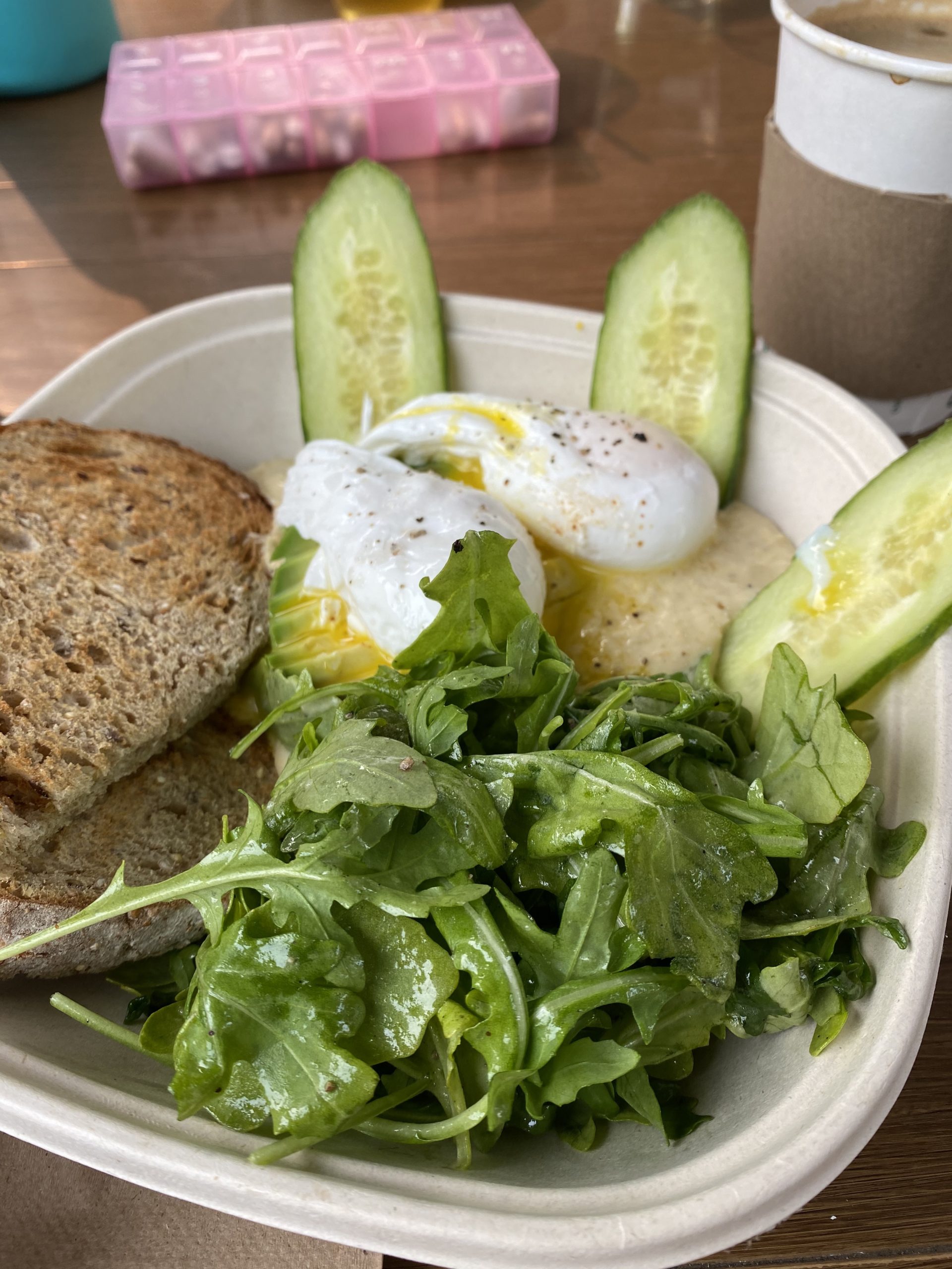 We went to Southside in Yountville (cutest town), and we walked around a bit too and saw the French Laundry Farm/Garden – it’s insane! Southside was grab and go but they had a cute patio behind the restaurant where you could sit. I got the poached eggs and greens, as well as a Café au lait (lol) and it was great.