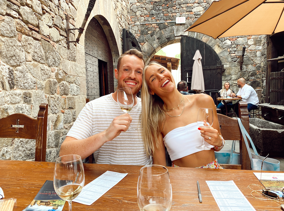 Next up was Castello di Amorosa and you HAVE to ask for Vincenzo when you go there! It’s legitimately a classic castle that you would see in Europe. We didn’t get to see the inside because of COVID, but we did get a mini tour of the outside and got to do our tastings outside in the courtyard which is amazing. Let’s just leave it at, Vincenzo is our bestie and we’re now members as Castello di Amorosa! LOL. We gave ourselves about 2 hours here but we would’ve loved more time.