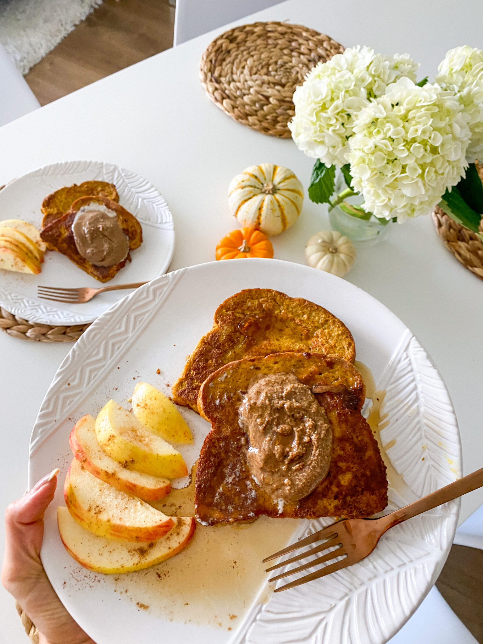 - Healthy Pumpkin French Toast OMG you guys, this recipe is insanely simple + perfect for a cozy Fall morning! Nick and I have been making it on repeat every night – it’s so delish, you will LOVE!