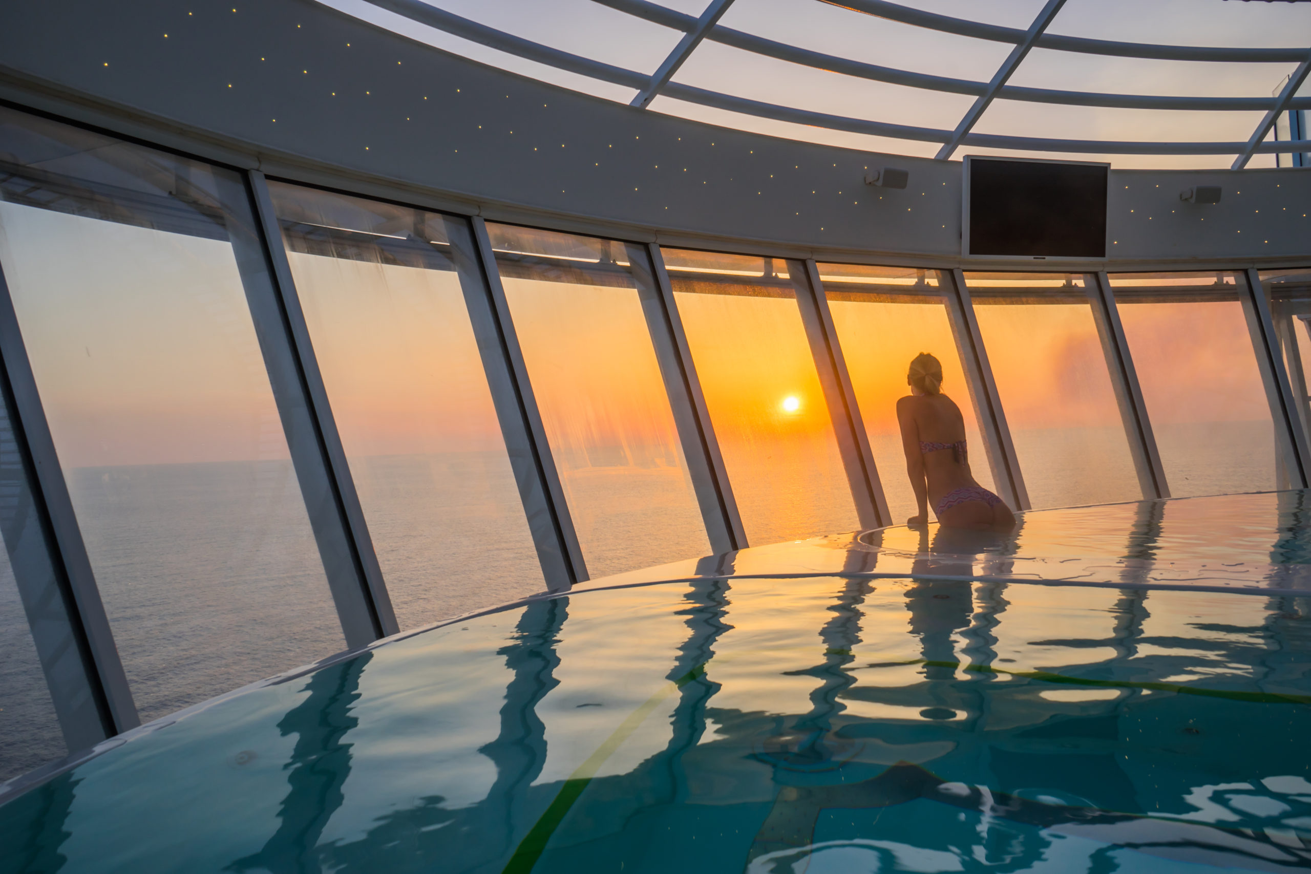 - Enjoying the infinity hot tub during sunrise before our workout!