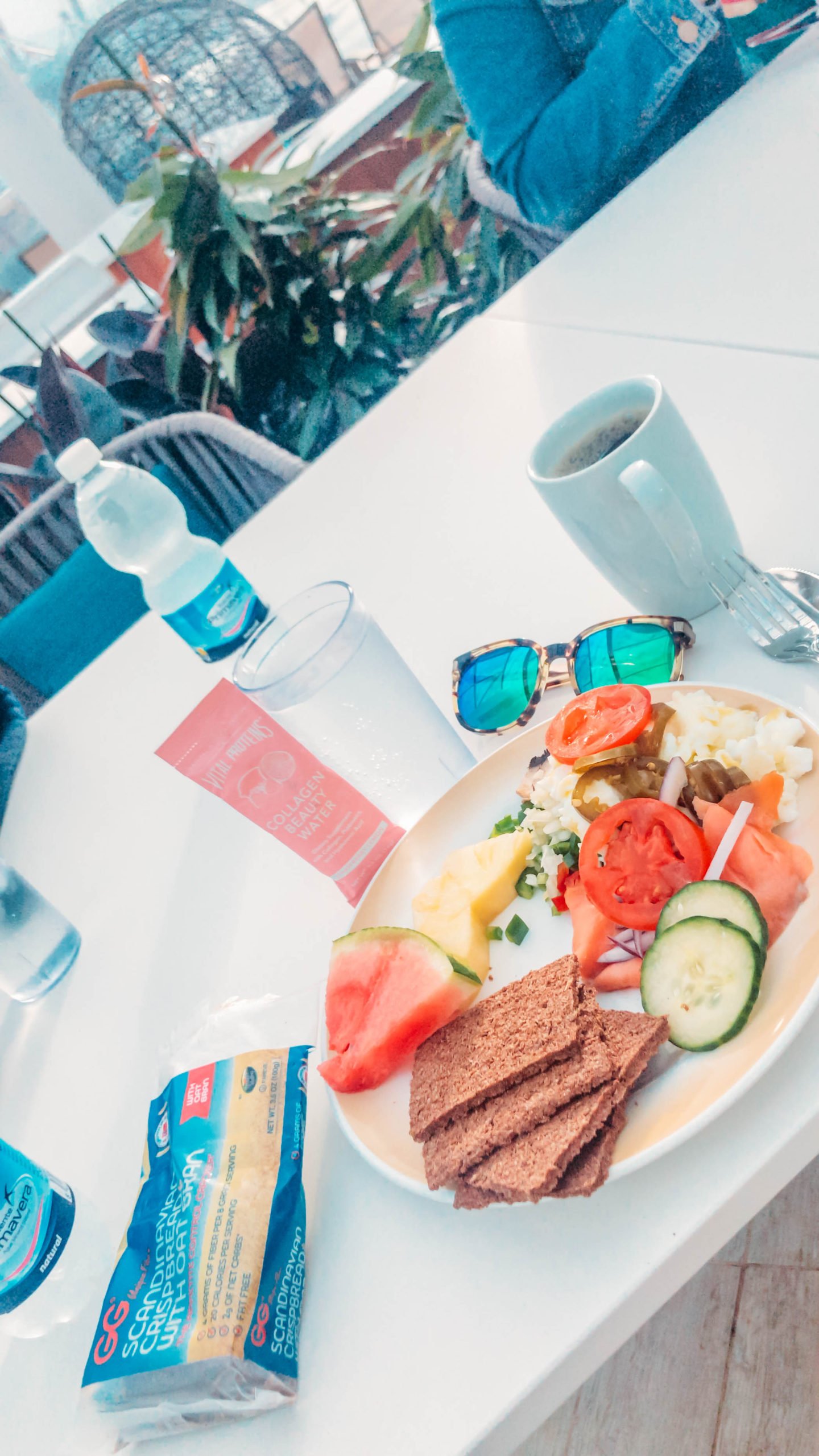 - GG Crackers, Vital Proteins Beauty Water, Smoked Salmon, Veggies & of course Coffee!