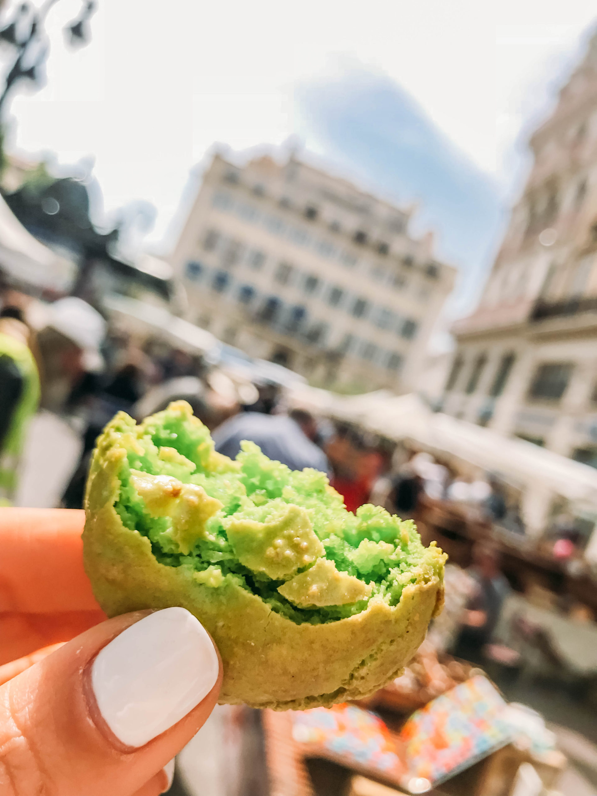 - Enjoying a macaroon in Marseilles, France!